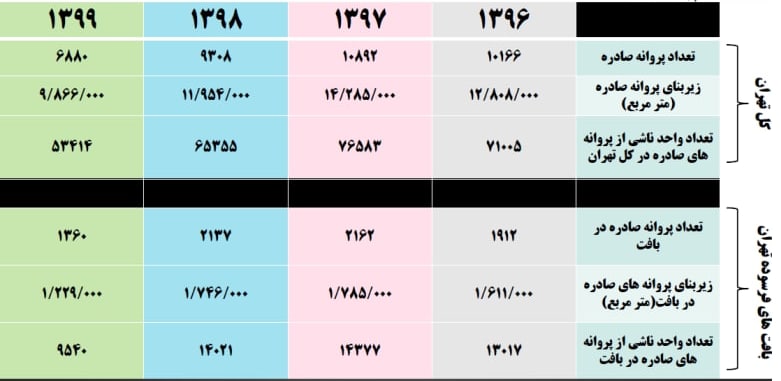 آمارهای ساخت سال طی سالهای 96 تا 99